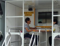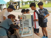館外では 午後から嶺北消防署による 起震車による地震体験 かき氷 キッチンか-で い