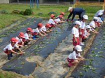6/6 1年生と さつまいも 「紅はるか」 の苗を植えました。秋に収穫芋掘り予定です。