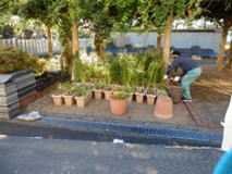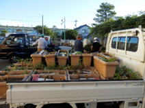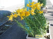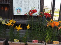 5月に希望集落に配布した ゆりプランタ- 大石コミセンに仮保管分 まとめてゆりの里公園へ