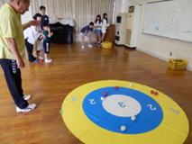 10時30分に コミセン集合 一旦 大石小学校の多目的ホールに移動し ペタンクとディスクゲッタ-を .