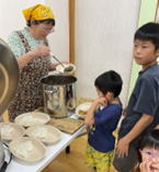 楽しみました。この間に コミセンの調理室で 日赤奉仕団の方々は カレーやフルーツポンチを作りました。