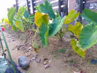 大根が発芽して不織布を持ち上げてきたので、不織布を外してオルトランをまいてネットを掛けました。大根は初期段階で虫の害を受けると根性が曲がってしまって大きく育たなくなるので、面倒でもネット掛けは必須です。ホームセンターで買ってきたキャベツと白菜の苗も頑張って植え付けました。根こぶ病、ネキリムシ対策の薬も混ぜ込んだりまいたりしておきました。苗は小さめなので安いですがその分慎重な手当が必要です。人参は元気です。間引きが近付いてきました。今年は雨不足で疲弊していた里芋ですが、やっと元気を出してきました。近所で出荷用の里芋を広く栽培している畑がありますが、酷く枯れた状態になっていて被害は大きいと思います。本当に酷い夏でした。微妙に冬も怖いです。 |