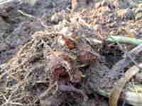 スズメガの成虫が車のタイヤにくっ付いていました。スズメガの幼虫は里芋の大敵。一日で大きな葉が食い荒らされます。葉がなくなってしまうこともありました。再々チェックに行きますが次から次へと湧いてきて悪さをしていました。この成虫は退治しておきました。大根は順調に育ってきていますが中には虫に喰われて葉が落ちているものがあります。根元を掘るとやはりヨトウムシが出てきました。これも退治しておきました。別の1株でも葉が落ちているものがあったので掘りましたが虫は見付からず。ダイアジノンを土に混ぜ込んでおきました。今年の夏は異常に暑い夏でしたが虫にとっては有利だったのかもと思ってしまいます。 |