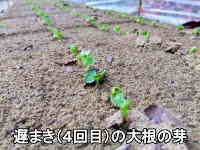 寒い一日だったので畑には収穫に出ただけでした。玉葱の畝は昨日1畝作りました。この畝には約200本ほどは植え付けられる予定です。もうあと1畝作って計400本以上を目指します。ただし、育苗中の玉葱の苗は葉の先端が枯れ掛けています。今年は「コキア」を畑の端に育てていて、今は赤くなってきて見応えがありますが、大きくなり過ぎて玉葱苗を囲むようになってしまったためやや病気がちです。ねぎ系は少しでも陰になるのを嫌がるので、明日にでも苗床から取り出し順次植え付けていってしまおうと思います。宮重大根は地上部が伸びてきていますが曲がり気味です。大根も品種によって育ち方に違いが感じられます。遅まき大根は元気です。完全無農薬なのでつまみ菜収穫中です。やや遅まきの法蓮草も元気に芽を出しています。 |