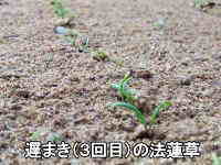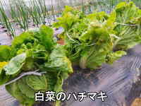 白菜は5株がヨトウムシにやられました。株の中心の新芽が食べられているので再生不可です。株元にヨトウムシが姿を見せていたので早速退治しました。やられた株の場所は軽く掘り上げて虫がまだ潜んでいないか調べた後にダイアジノンを混ぜて新しい苗を植えました。ナメクジの可能性もあるのでナメクジ退治の薬も置きました。暑い夏でしたが虫には好都合だったのかもしれません。赤蕪、白蕪、春菊の種をかぼちゃの畝の後作としてまきました。しっかり圧着、不織布掛け、水やりをして完了。これでかなり安心です。芽が出たら防虫ネット掛けが待っています。 |