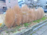 今年は畑の端にコキアを30本ほど育てていましたが、きれいな赤色も終わり枯れ木のようになりました。自分が子どもの頃、コキア(ほうき草と呼んでいました)のほうきを見たり使ったりしたことがあったので自分でも作ってみることに。作り方は至って簡単で、枝に付いている種のようなものをしっかり払ってから束ねて完了です。枝先は広がろうとするので縛っておきましたが、癖が付いたら外してもいいかなという感じです。ほうきの先がしなやかで細かなゴミもきれいに集めることができ、玄関先の掃除に活躍しそうです。コキアはたくさん刈り取りましたが畑にはまだ半分は残っています。畑への不法侵入防止としてしばらくはこのまままにしておきます。雪が積もるとまた面白いかもしれません。