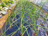 一本ねぎは肥料が切れて育ちが悪くなってきたので、秋冬の需要期に向けて植え替えをしました。掘り起こしたねぎは太さの順に並べ、植える時も太さの順に植えていきます。こうすることでそだちが揃い土寄せも容易です。スコップの深さ分掘り起こし、たい肥や鶏糞を入れました。一応安心ですが実は九条ねぎも半畝残っているので何とかしないといけません。先日まいた春菊、白蕪、赤蕪の芽が一斉に出ています。芽が出た以上は今度はネット掛けをしないといけません。することが次々と出てきます。白玉ねぎのネオアースの芽は5センチ程度に伸びてきています。植え付けは11月中旬。そのときにベストなサイズになっていないといけないので、天候と施肥の加減の調整に気を使います。 |