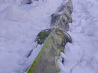 1月28日(水) 重い雪が畑のトンネルを潰す 雪除けしたけどまた降るらしい