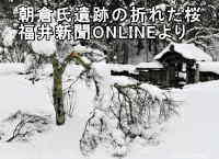50cmほど積もるのは北陸ではよくあることですが、その後雨が降って重い雪になり、畑のトンネルは潰されました。ビニールのトンネルはビニールが引きちぎられるなど酷い状態です。頑丈に造った空豆の防虫ネットのトンネルは一度除雪しておいたので大丈夫でした。大根、人参、法蓮草、春菊など何とか救出しました。庭のローズマリーも完全に潰されていましたが折れていなかったのでよかったです。柚子の木もぺしゃんこでしたが折れていなくて大丈夫でした。なお一乗谷朝倉氏遺跡の桜が折れたとの報道がありました(福井新聞より引用)。ここだけでなくあちこちで被害が出ていると思います。ウォーキングに行くグリーンセンターも心配です。