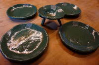 丸皿2枚 径15.3 これも表は麻布目模様です。焼成で反らずにきれいに焼けました。 |