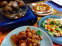 | 南オーストラリア バロッサ・ヴァレーの赤。シラーズ、カベルネ・ソーヴィニヨン。オーガニックのブドウを使用。前回は白で今回は赤です。色は薄い。香りに特別感はない。すっきりとさらりとした酸。カベルネよりシラーの果実味が強い。底物よりはややよいという印象です。豚ヒレカツは肉をしっかり裏表で叩いておくと絶対に美味しい。パン粉をたっぷり付けた後、少し時間を空けるとパン粉に水分が移ってよりカラッと揚がるようです。豚肉の冷しゃぶサラダの茗荷は庭の物。大葉は畑の物。流石にトマトは畑にもうありません。毎日収穫できるオクラの梅和えも美味しい。 |
